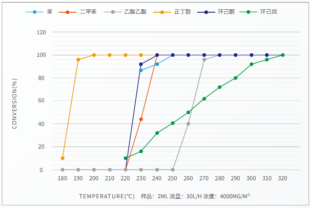 废气转化率温度曲线