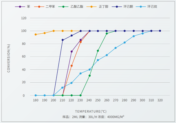 NS-HC-561由特殊工艺制成 1-2nm 铂基高活性组分,通过特有工艺铆合在高比表面积载体之上,结合供氧载体,制成广谱性VOCs氧化催化剂。该催化剂其具有高稳定性、长寿命以及高性价比优势,适用于CO及RCO催化燃烧装置。